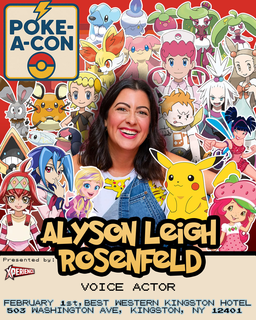 Alyson Leigh Rosenfeld is a fan-favorite voice actor known for bringing iconic Pokémon characters to life, including Bonnie, Nurse Joy, Sophocles, Female Pikachu, Dedenne, Roxie, and more! A true standout in animation, she’s also known for major roles such as Rio Kastle in Yu-Gi-Oh! ZEXAL, characters in Winx Club, Polly Pocket, and Strawberry Shortcake! Alyson’s vibrant performances and incredible range have made her a beloved talent across anime, children’s programming, and beyond!