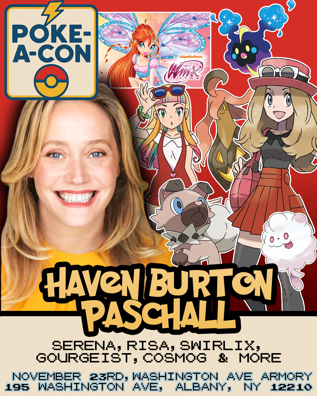 Haven Burton Paschall is the voice of beloved Pokémon characters including Serena, Risa, Swirlix, Gourgeist, Cosmog, and more! She’s also known as the voice of Bloom in Winx Club. Meet her live at Poke-A-Con 2025!