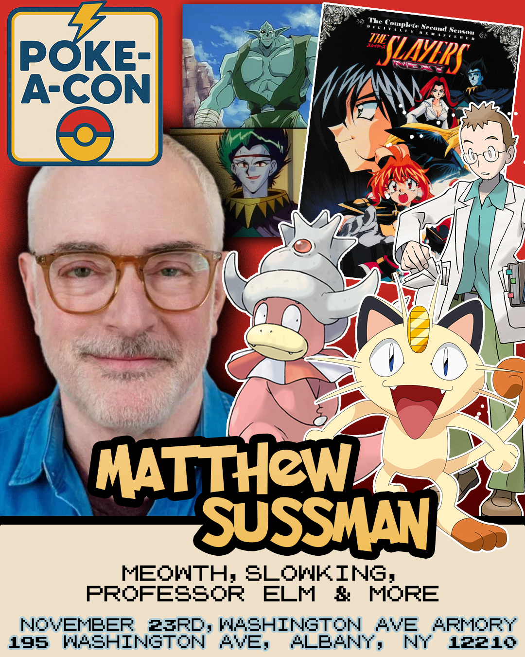 Matthew Sussman is best known as the voice of Meowth, Slowking, and Professor Elm in Pokémon. He also voiced notable roles in Slayers, adding to his legacy in anime and voice acting. Don’t miss your chance to meet him at Poke-A-Con 2025!